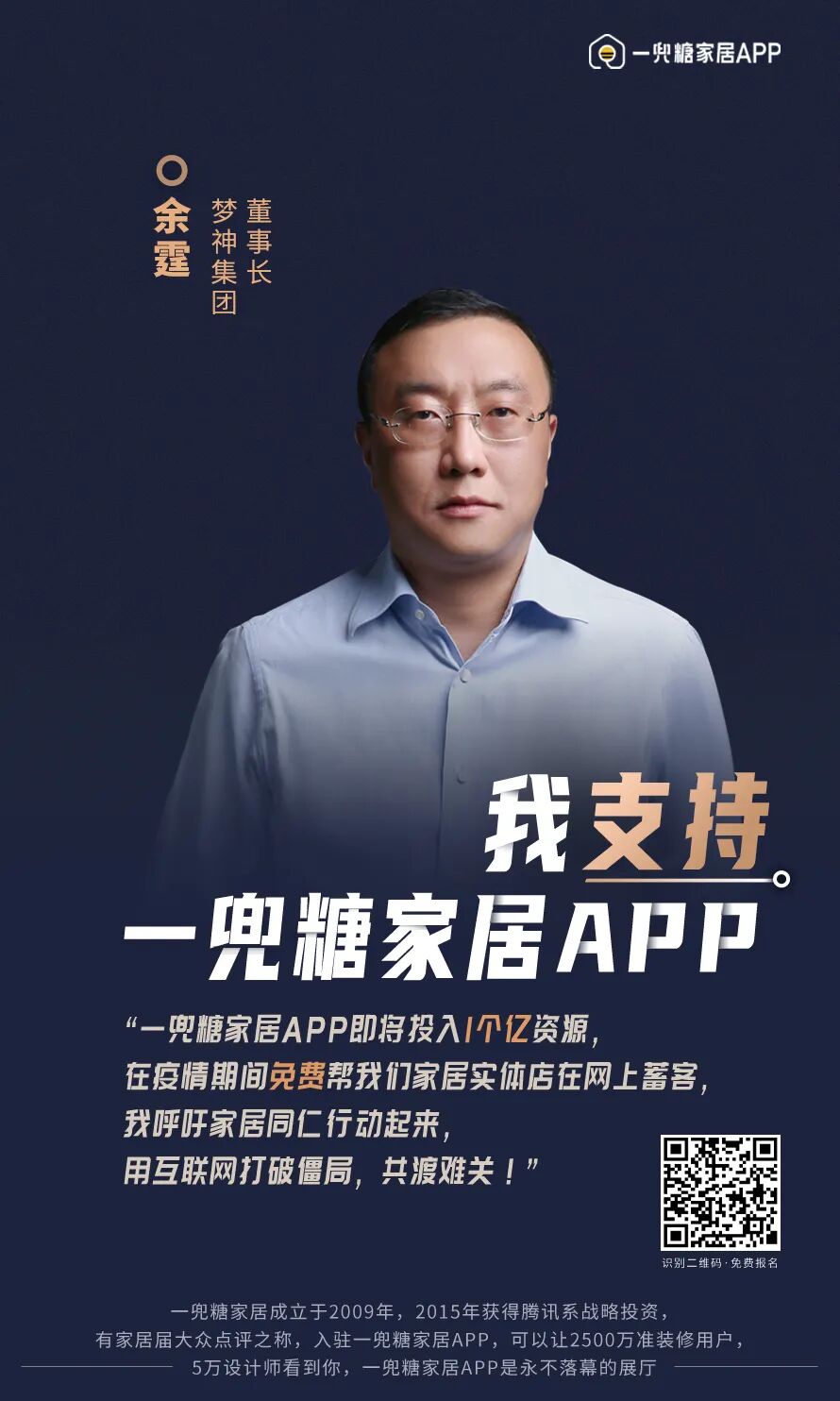 2020年2月24日,宁波市家具商会联合“一兜糖家居APP”,发布更多的免费资源给到广大会员。“一兜糖”创始人徐红虎表示,“我们将利用1亿资源,从多个维度助力厂商转战线上,高效蓄客,免费入驻+投放精准流量,1亿资源打造诺亚方舟。”