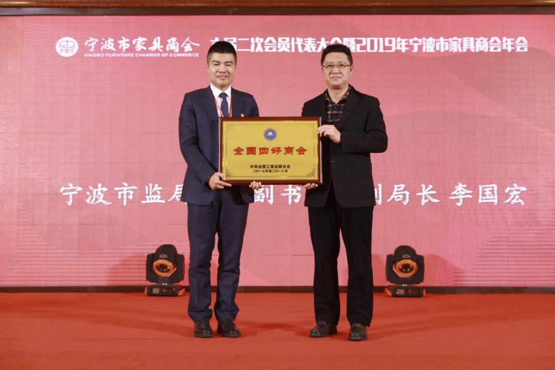 宁波市家具商会六届二次会员代表大会、2019宁波市家具商会年会暨“酷家乐之约”中国宁波家居行业企业家论坛昨日圆满落幕。会上,宁波市工商联党组副书记、副主席黄林军正式向会长丁敏颁发“全国四好商会”奖牌。历任六届理事会、21年发展历程,宁波市家具商会终迈入国家级优秀商会行列。