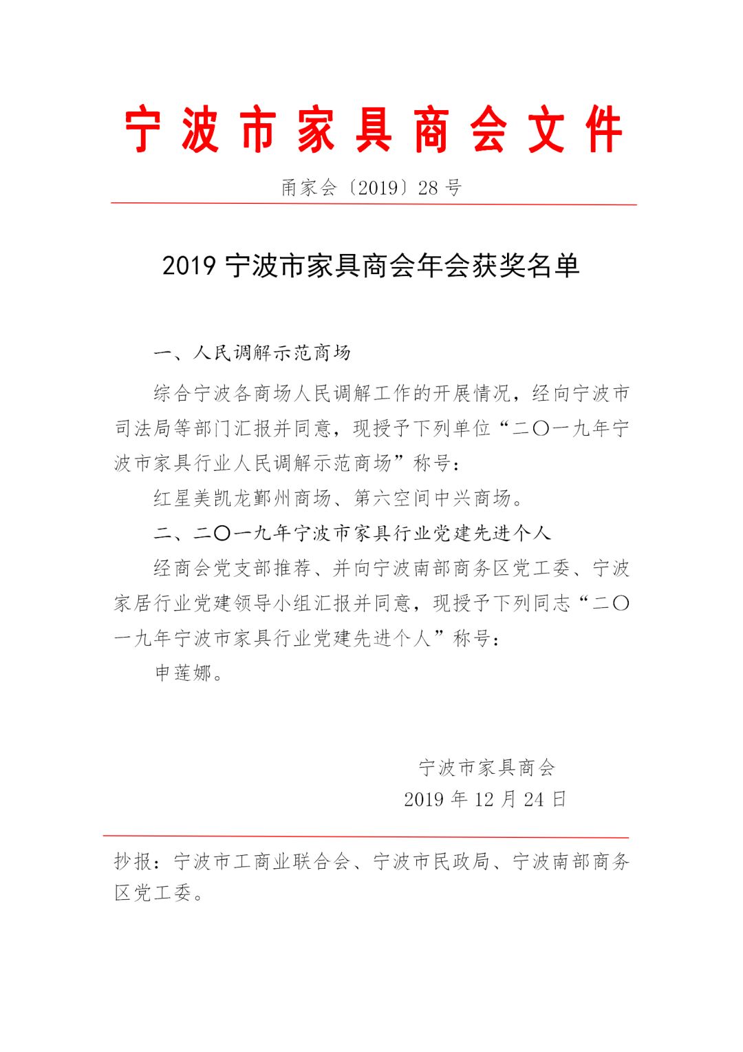 2019宁波市家具商会年会获奖名单一、人民调解示范商场综合宁波各商场人民调解工作...