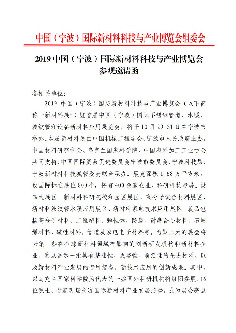 10月29日-31日,2019中国(宁波)国际新材料科技与产业博览会将在宁...
