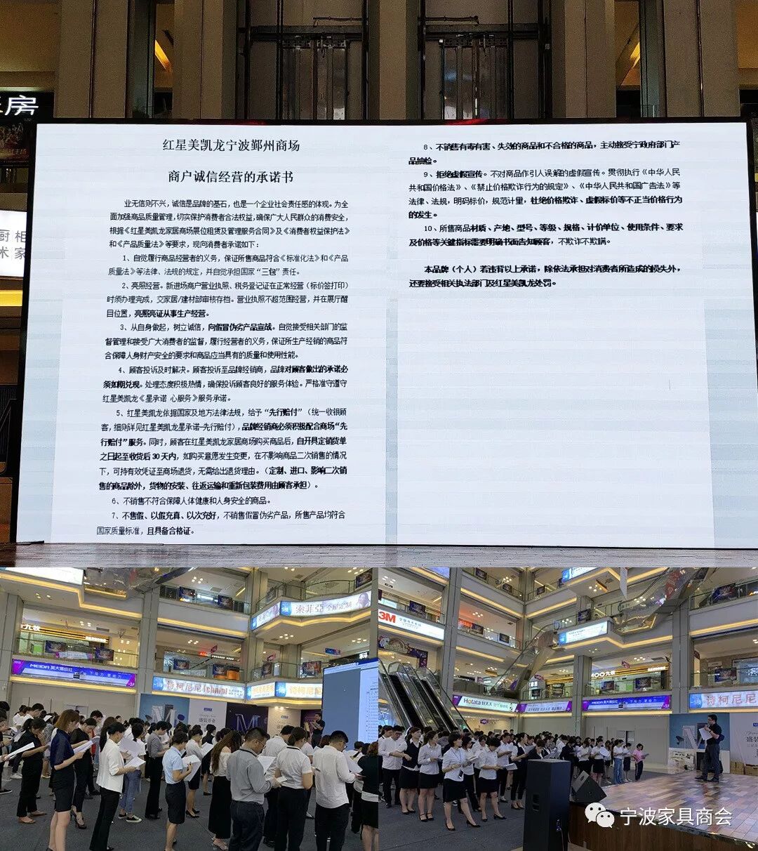 2019年,8月19日红星美凯龙宁波鄞州商场开展了“商户诚信经营”动员大会。并且下发了“商户诚信经营承诺书”,动员全体商户,开展诚信经营,放心消费。