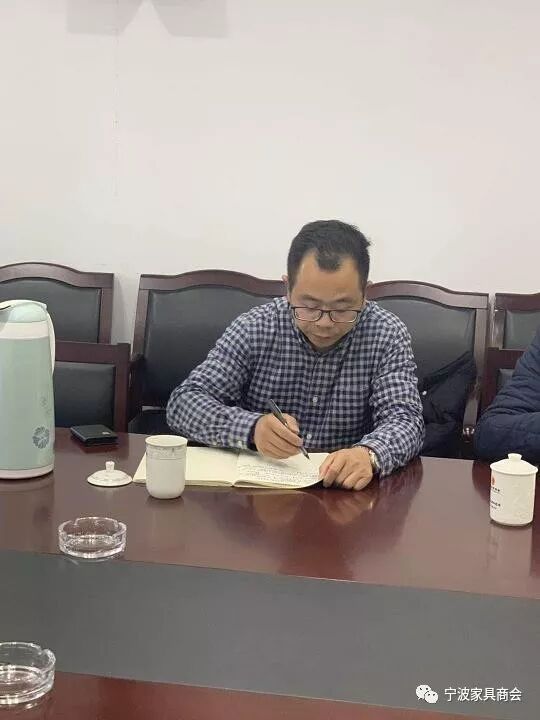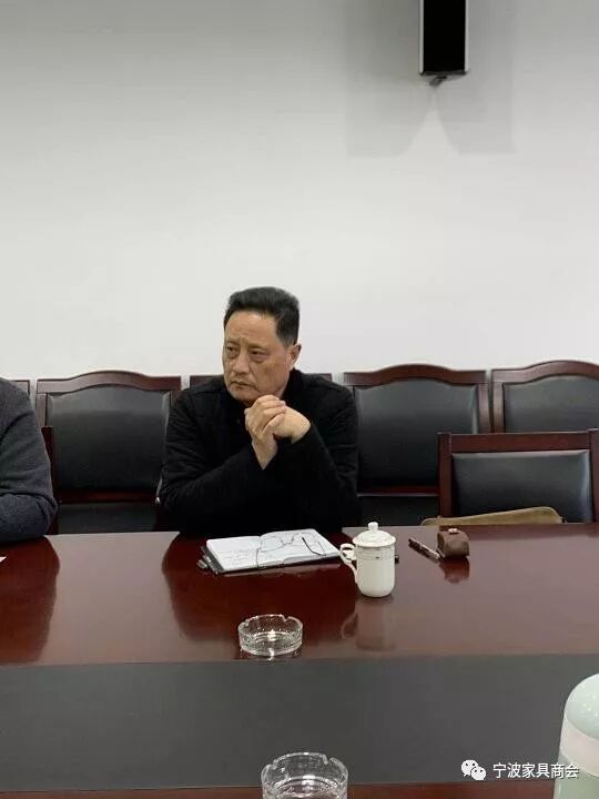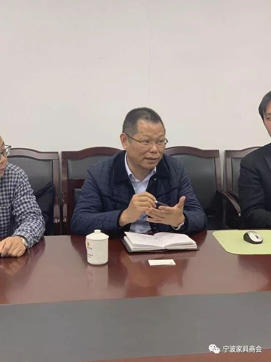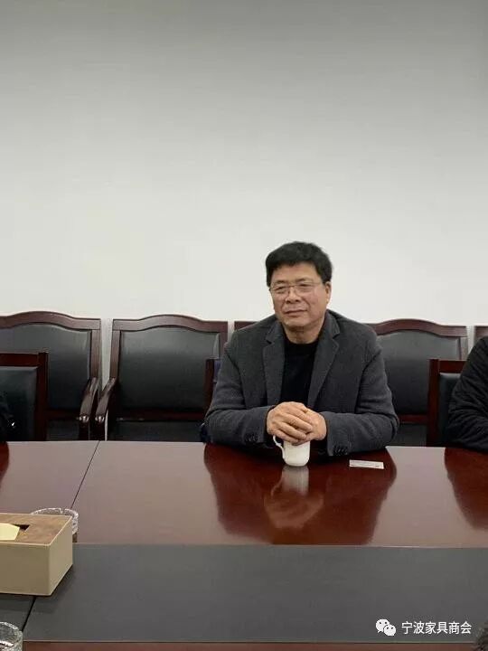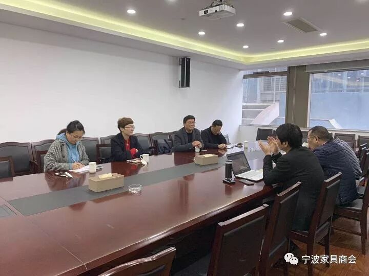 2019年3月25日下午,南通市家居行业商会会长范建斌、名誉会长何邱林、秘书长陈慧等领导莅临宁波市家具商会调研指导。商会执行会长兼秘书长杨君渊、定制委副会长刘有言、执行秘书长柴山、副秘书长梅发爱、定制委秘书长方华等陪同调研。