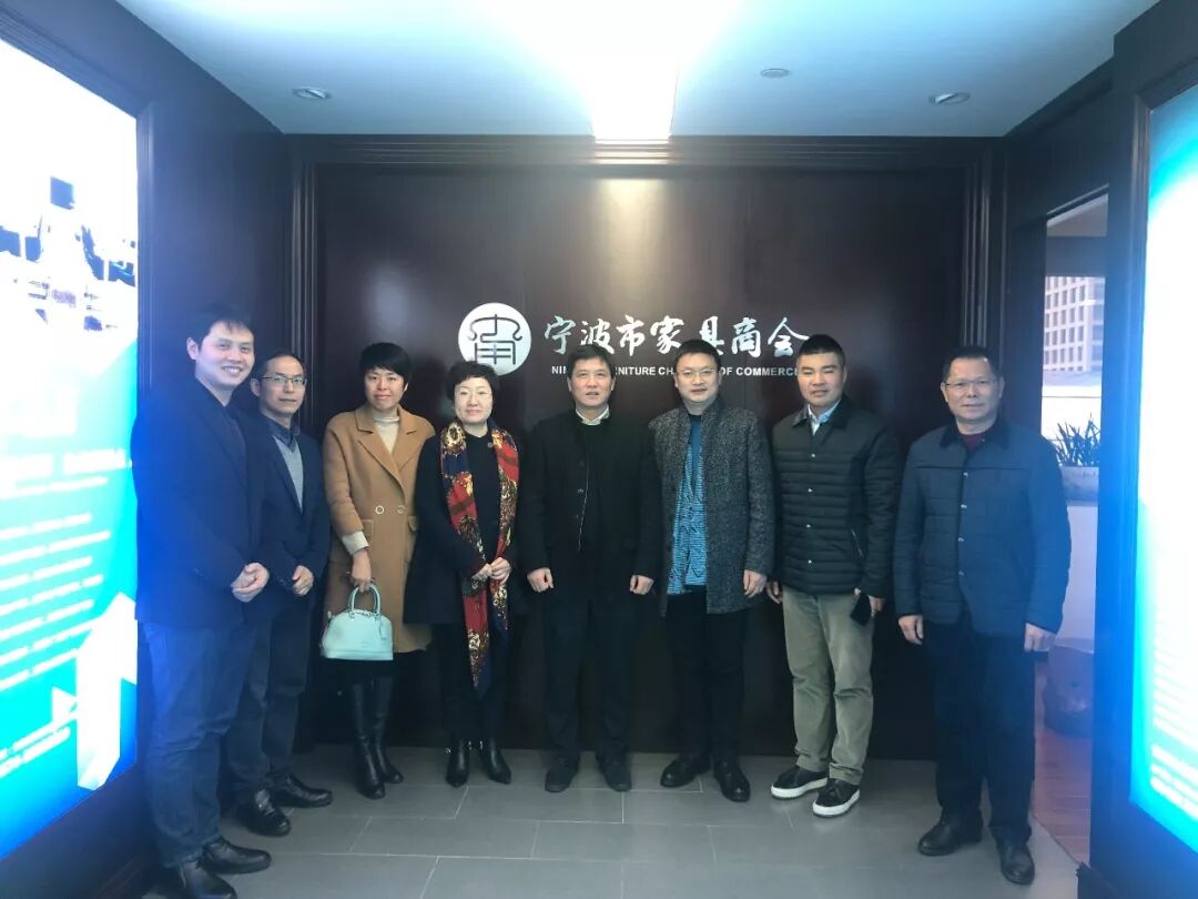 2019年2月22日下午,宁波市委统战部副部长、市工商联党组书记陈少春,市政协副秘书长、市工商联副主席石 兰,浙江省工商联法律处处长吕晓峰、联络处主任科员季张珍,宁波市工商联研究室主任陈晓东等领导一行来到宁波市家具商会(以下简称我会)调研指导,了解商会运营经验,听取行业发展情况和对政府工作的建议。我会会长、美罗堡定制家居总经理丁敏,执行会长兼秘书长杨君渊,执行秘书长柴山等陪同调研并做了专题汇报。