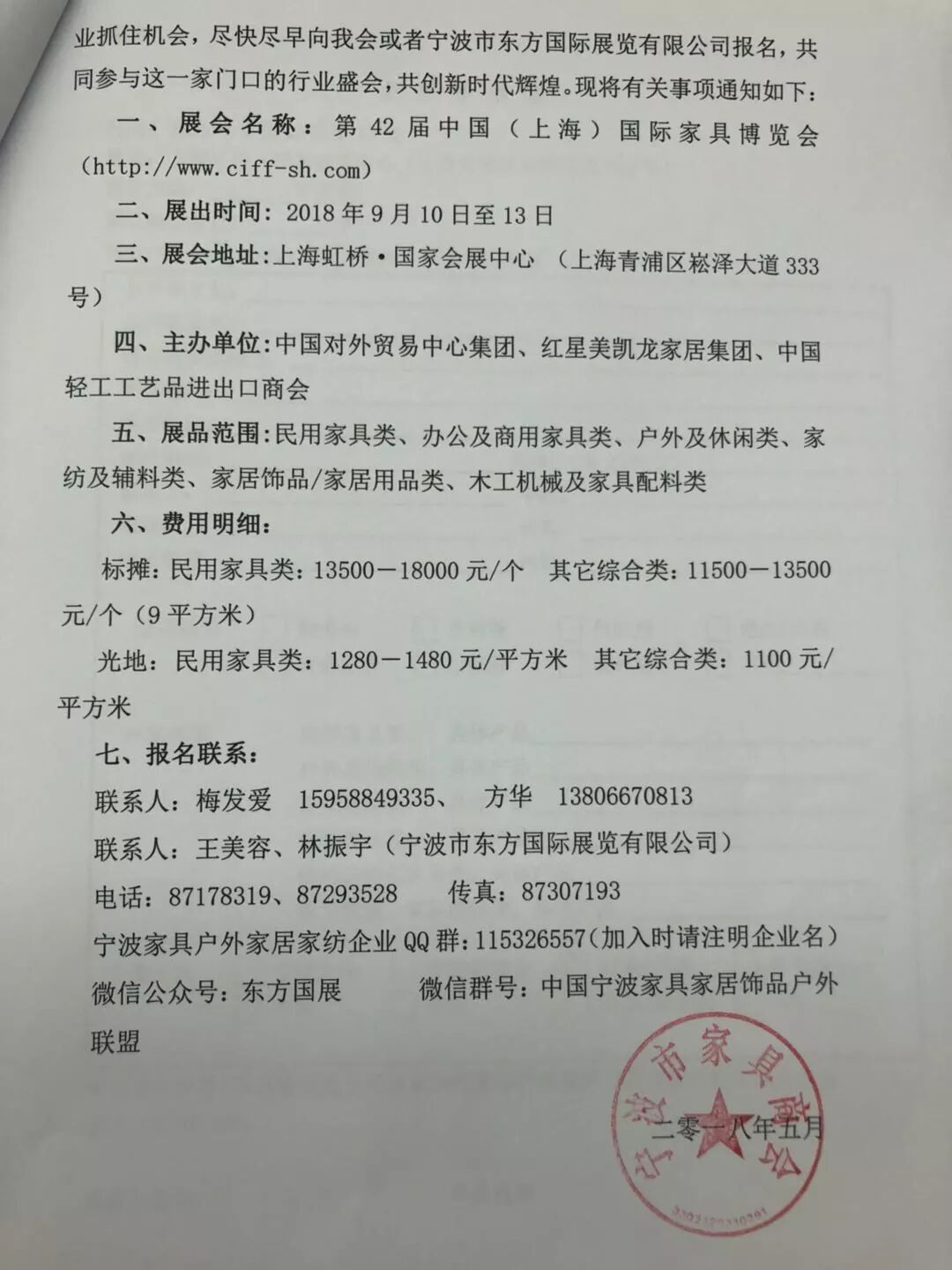关于邀请参加 第42届中国(上海)国际家具博览会的通知