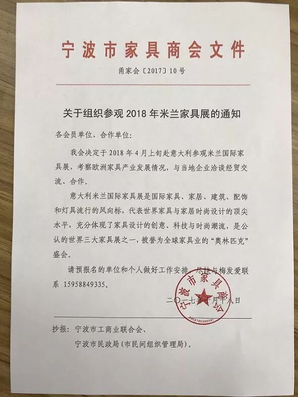 关于组织参观2018年米兰家具展的通知