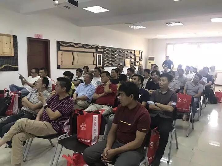 下午2点考察团参观了上海烨恒木业机械展厅,听取了刘烨总经理关于“实木定制快速生产系统”,满晟永、余子期厂长“实木定制备料工艺分享”的讲座。会员企业跟设备工厂进行了充分交流和沟通,详细了解,对生产工艺、设备更新提出了建设性意见,取得了良好效果。本次考察也取得了圆满成功。
