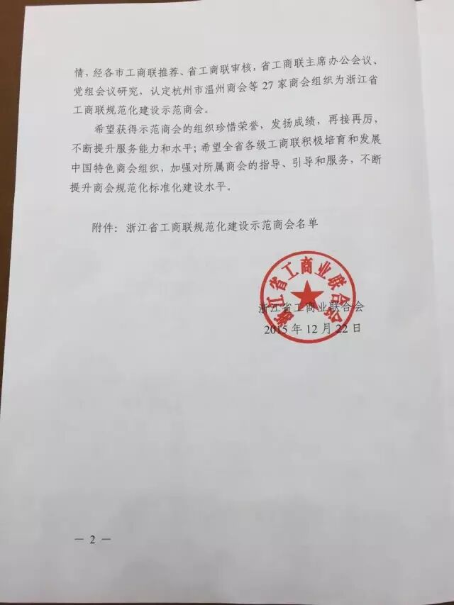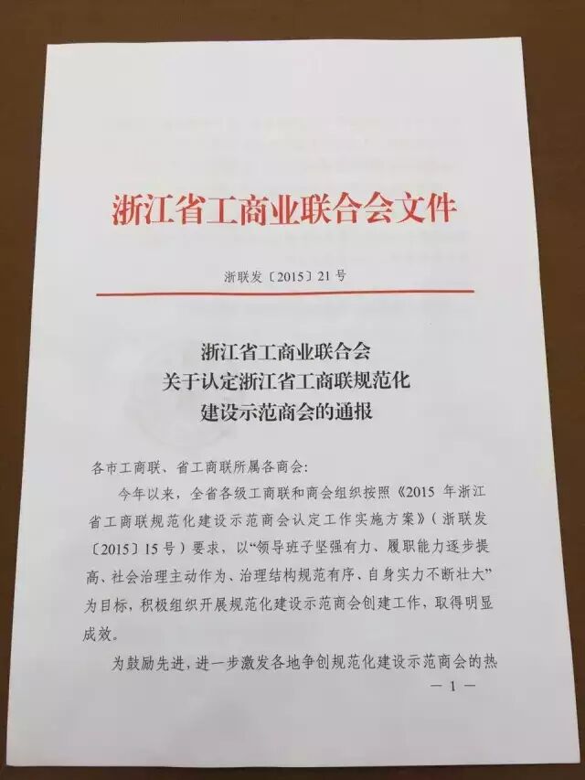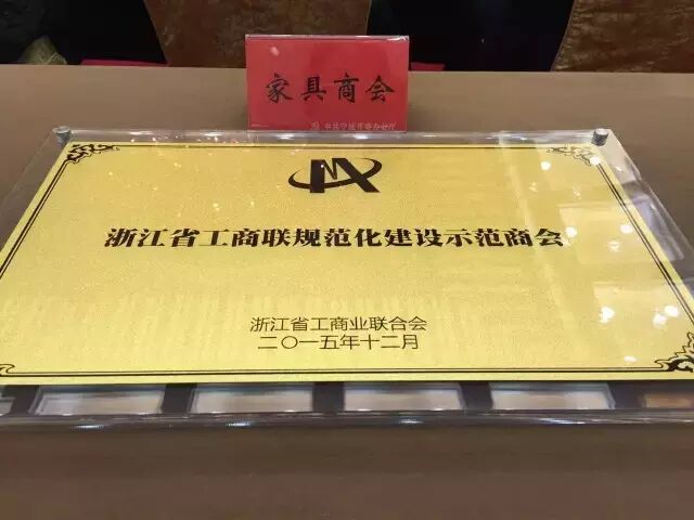 2015年12月30日,宁波市工商联(商会)十四届五次执委会会议上传来消息,经过组织推荐和省工商联领导的实地考评,宁波市家具商会在全市数百家商会协会中脱颖而出 ,荣获首批“浙江省工商业联合会规范化建设示范商会”荣誉称号。