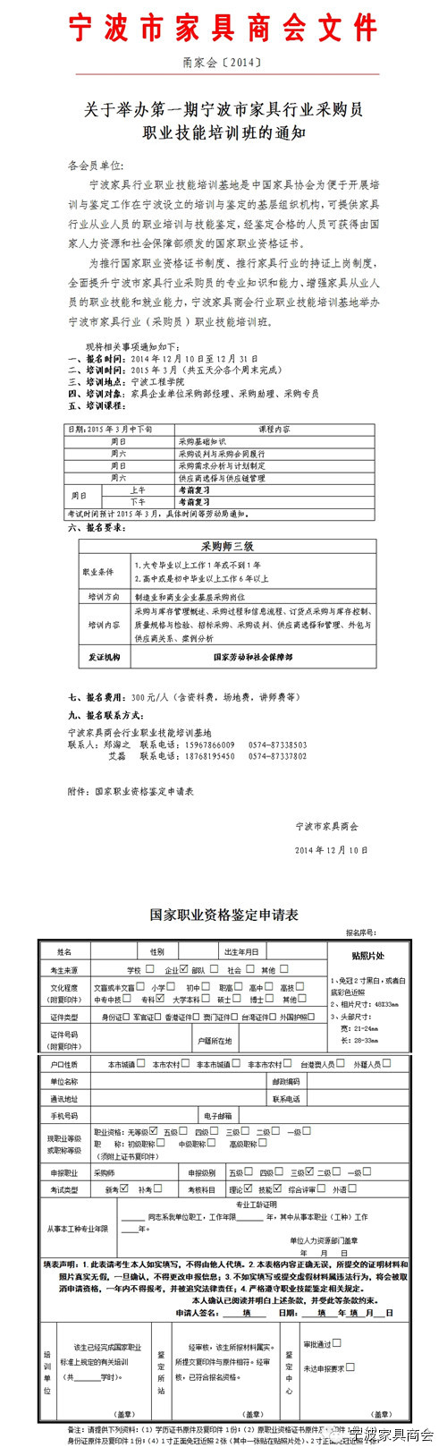 为推行国家职业资格证书制度、推行家具行业的持证上岗制度,全面提升宁波市家具行业采购员的专业知识和能力、增强家具从业人员的职业技能和就业能力,宁波家具商会行业职业技能培训基地举办宁波市家具行业(采购员)职业技能培训班。