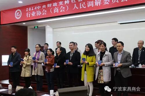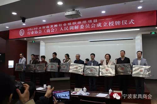11月14日下午,2014中央财政支持社会组织示范项目——行业协会(商会)人民调解机制试点项目的十家试点单位人民调解委员会成立授牌仪式在宁波新金星宾馆举行。