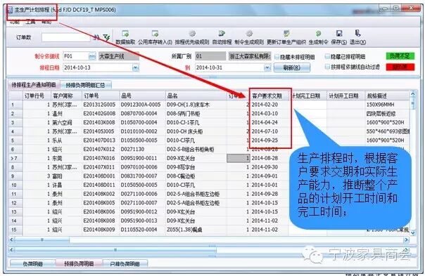 生产排程时,根据客户要求交期和实际生产能力,推断整个产品的计划开工时间和完工时间;
