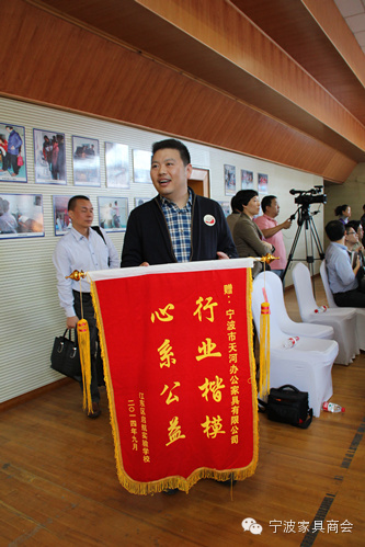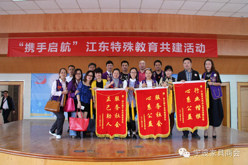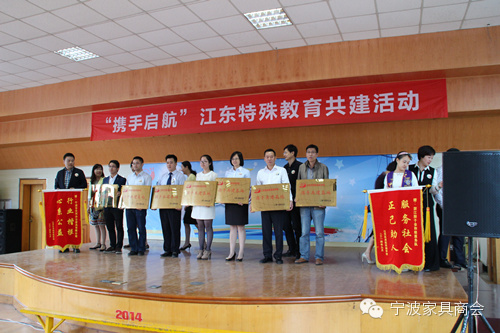 知识启迪梦想,爱心孕育希望。2014年10月13日上午,在宁波市江东区启航实验学校举办了“携手启航”江东特殊教育共建活动。宁波市家具商会副会长、宁波天河办公家具有限公司总经理陈松松,宁波市家具商会副秘书长兼宁波市家具商会流通专业委员会秘书长郑淘之出席活动。
