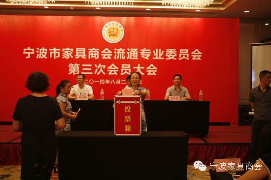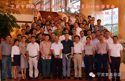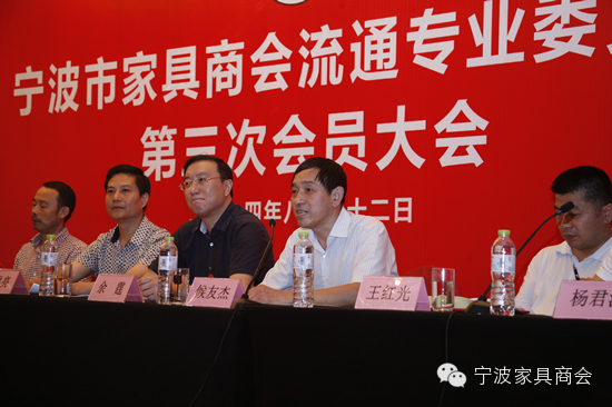 2014年8月22日,宁波市家具商会流通委员会第三次会员大会在宁波香格里拉大酒店一楼甬城宴会厅圆满召开。市工商联会员部副部长张洪亮、市消费者保护协会秘书长侯友杰、市家具商会会长(宁波梦神床垫制造有限公司总裁)余霆、市家具商会荣誉会长(宁波大森家私有限公司总经理)郑善忠出席会议,宁波市第六空间总经理张继东、华生国际家居广场副总经理谢洪兴、华生香江家居有限公司总经理毕延伦、华康名家私总经理梁建伟、红星美凯龙港隆店总经理周琴及现代商城、德克德家家居广场、友邦家居广场、红星美凯龙鄞州店、慈溪红星美凯龙等代表参加会议,会议还邀请了《宁波装饰》、《家具中国》、搜房网、东方热线等一线媒体参加。到场会员单位共有80余人参加,会议由市家具商会秘书长杨君渊主持。