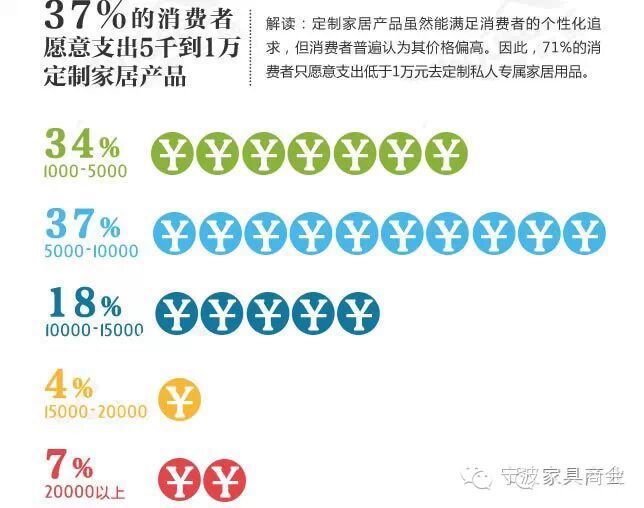 近年来,家居定制受到众多消费者的青睐,下列图表是相关机构为了解定制家居消费状况所做的【定制家居趋势】调查,通过此次调查,希望可以给家居企业、经销商等提供有用的数据分析。