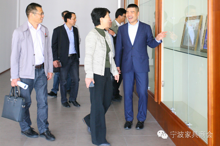 全国工商联橱柜专业委员会执行会长、公司总经理丁敏先生带领考察组一行现场参观了生产车间、员工餐厅、产品展厅,并详细介绍了企业发展、团队建设、品牌培育,以及企业发展规划。崔秀玲主席对近几年来的快速发展给予了充分肯定,并就产品质量建设、人才队伍培养、职工生活保障等与公司领导层进行了深入交流,对进一步推进清洁生产和职业卫生向企业家提出了建议和希望。