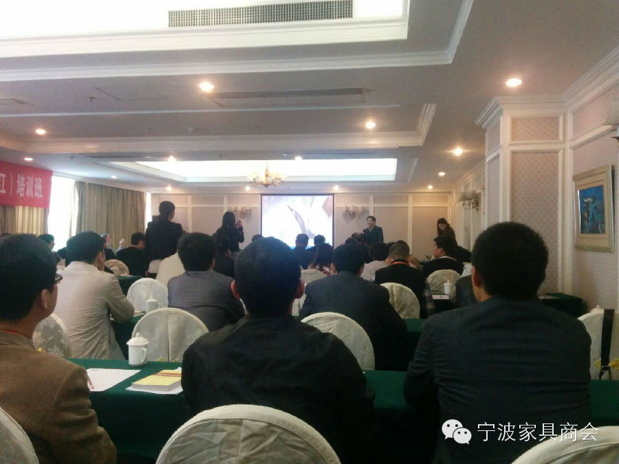 2014年4月24日,宁波市家具商会副会长兼秘书长杨君渊出席“轻工行业职业技能鉴定考评员(家具行业●浙江)培训班”。浙江省家具行业协会会长蒋鸿源致欢迎辞,中国家具协会副理事长刘金良致辞。