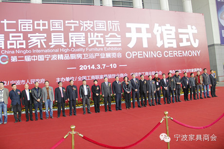 2014年3月7日上午9点,由宁波市人民政府支持,全国工商联家具装饰业商会、宁波市工商业联合会主办,宁波市家具商会承办的第七届中国(宁波)国际精品家具展览会暨第二届中国宁波精品厨房卫浴产业展览会在宁波国际会展中心隆重开幕。展会在宁波国际会展中心1-5号馆全面铺开,国际标准展位多达1500个,参展企业230多家,国际国内300多个一线品牌都在2014中国开年第一大展上亮相首秀。”