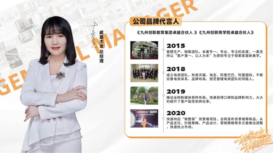 威皇木业于2000年在广州龙归创立的高新技术企业。2019年12月13日经中共广州市白云区太和镇委员会批复成立--中国共产党广州市威皇木业有限公司支部。公司主要从事建材、木作行业定制,以板木结合及铝蜂窝板系列,木线条及门墙顶柜一站式生产服务标杆企业。经过23年的发展沉淀,公司从生产木线条、背景墙作为木作定制行业的上游产品配套服务商,发展到致力于“门墙顶柜”产品一站式开发与生产制造企业。公司拥有电商中心、直播、短视频引流等平台,线上线下全方位结合销售渠道,客户遍全国各地及海外。