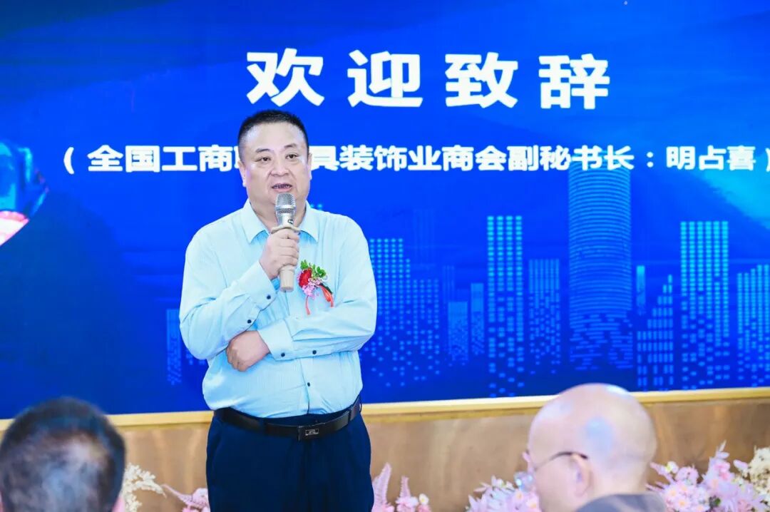 全国工商联家具装饰业商会副秘书长明占喜上台致辞。他表示,整装是近一年来最热的话题,他认为王会长在给行业树立榜样,用整装整家赋能更多终端以及有需要的消费者。整装三大支撑的基石是:具备项目管理职业化工人、数字化能力和品牌供应链。整装的根本是交付,而最大的难点也是交付,这条路不好走,但必须要走。合生雅居整装馆的成立并举行开业庆典活动,更代表着是一群人在走这条路,他希望大家在这个队伍中交流学习、共同探讨、共同发展。也希望更多企业在广州市定制家居行业协会带领下创造整装整家的价值,也希望每个企业都应该发挥出自身的价值。同时希望更多的企业也考虑社会价值,让更多有需要的美好生活的人更幸福的生活。
