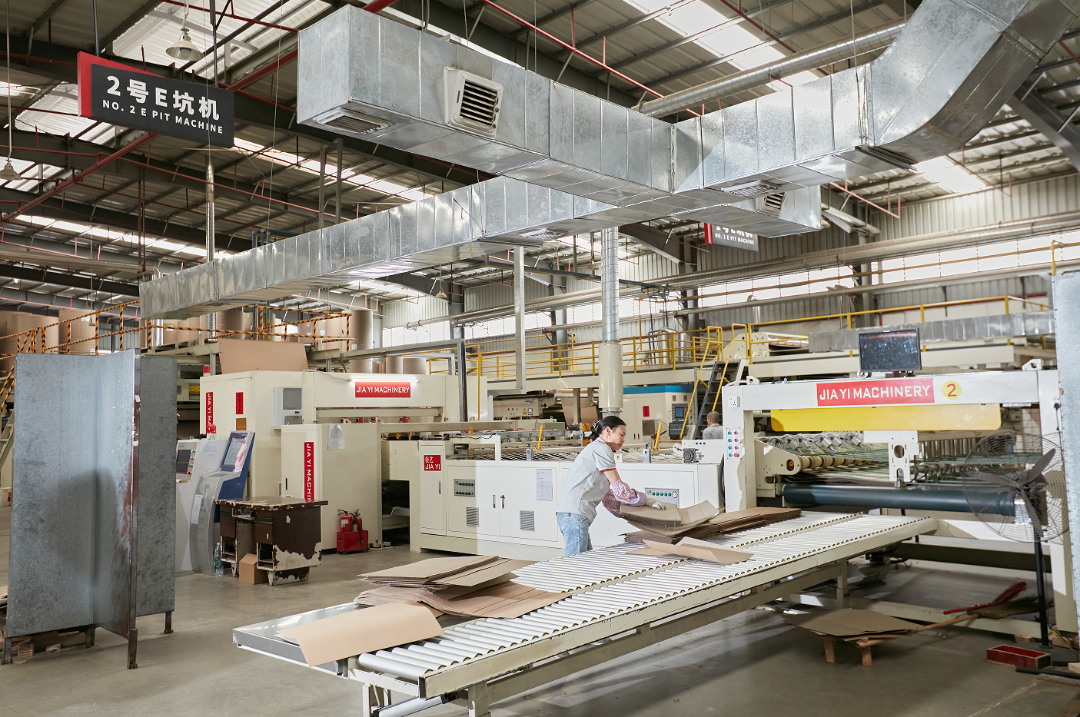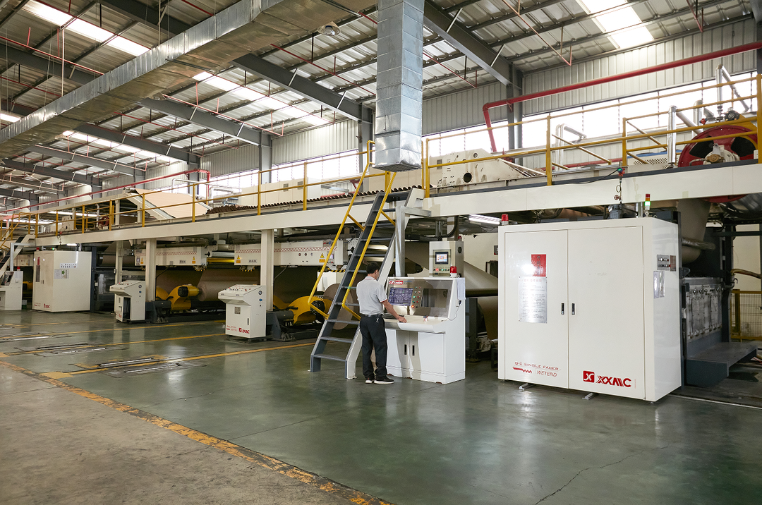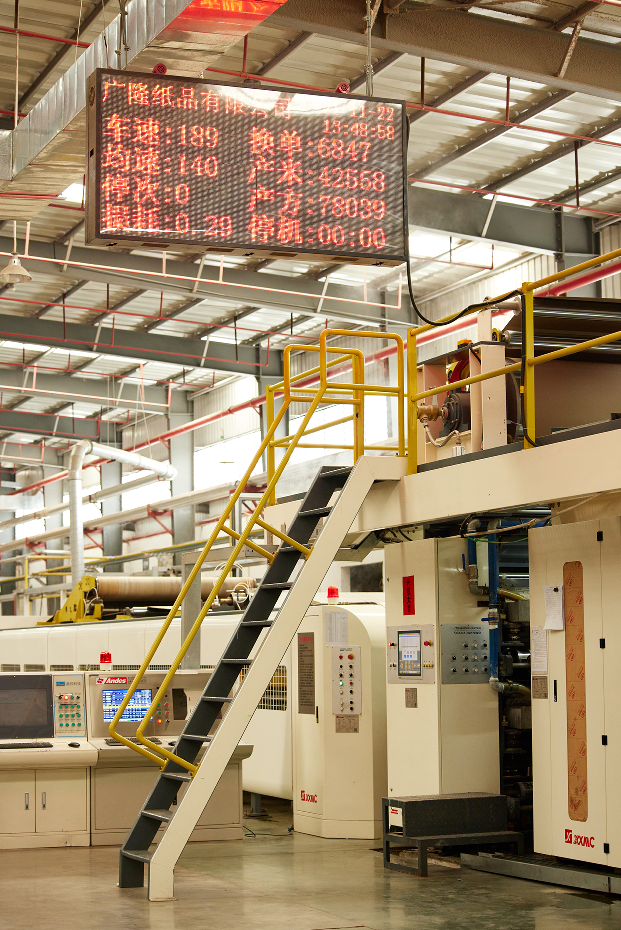 博罗县广隆纸品有限公司智能高速单层瓦楞纸板线6条,引领最新瓦楞设备,例如:开拓、永创、协鑫、佳艺等单面瓦楞纸板机械设备,现每台高速单层瓦楞纸板线实际产能(按生产单位计算)为1.2亿平方米/年,最大可满产产能(按设备可运行最佳状态)为1.5亿平方米每年,在同行中处于领先地位。