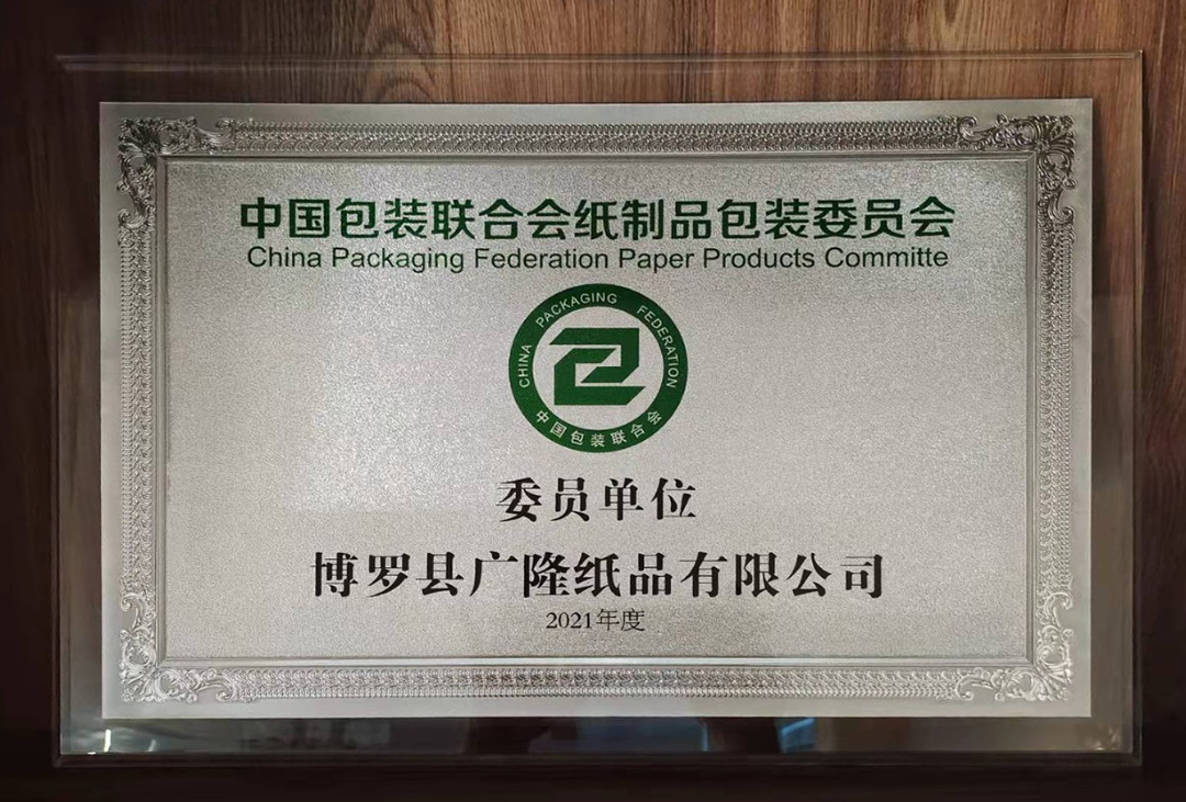 荣获《中国包装联合会纸制品包装委员会》委员单位