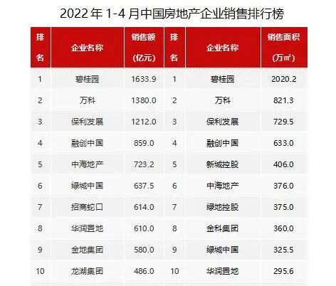 4月30日傍晚,多家机构发布2022年1-4月份中国房地产企业销售业绩情况。看了...