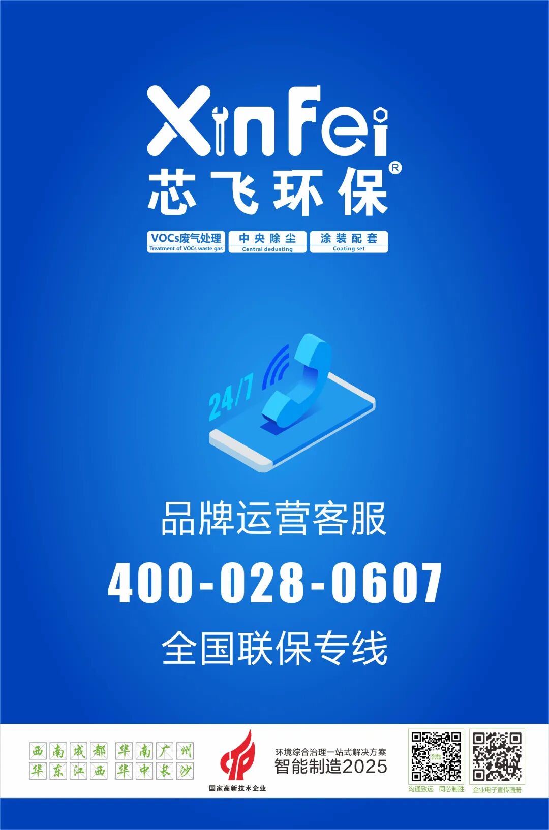 芯飞环保是一家专业研发、设计、定制、生产、销售、安装VOCs废气治理设备(活性炭吸脱附催化燃烧/UV光催化/蓄热式热力焚烧技术RTO、沸石转轮浓缩设备)、环保喷涂设备(PE/PU油漆喷房、水性漆喷烤房)、中央除尘设备(刮板/绞龙/漏斗/多点式)、粉尘处理(矿物粉尘/金属粉尘)、焊烟净化除尘系统、废水/污水处理设备、环保集成设备、环保设备管家式服务、设备运维管理的高新技术企业。