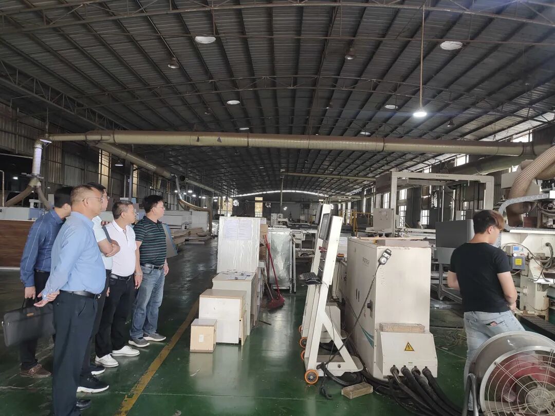 在王天兵会长的带领下,玉林市林业局局长伍贤初一行参观了合生雅居的生产车间,玉林市林业局局长伍贤初行感受自动化生产车间的魅力。偌大的车间,只需仅仅数人便能管理过来,自动化的厂房建设,板材自动化加工成所需的形状,不仅把昂贵的人力资源解放出来,还提高了生产效率,让玉林市林业局局长伍贤初惊叹不已王天兵会长介绍了产品所用板材,并对定制家居行业当前状况进行分析,王天兵会长表示,协会致力于开发定制家居市场,整合多方资源,帮助更多中小企业抱团发展,互惠共赢。