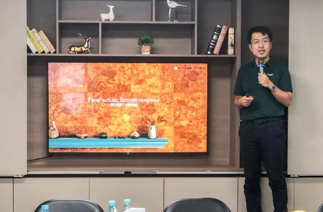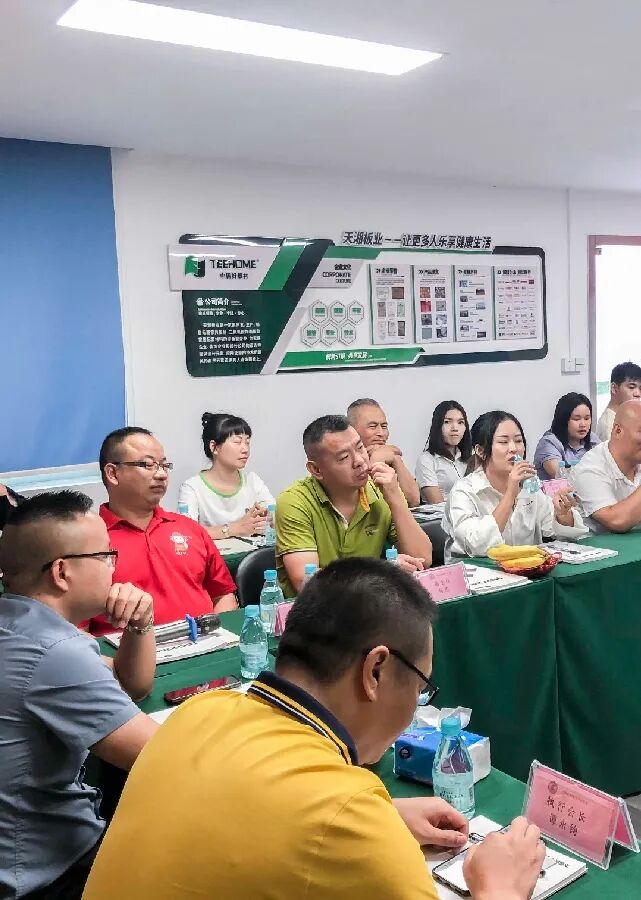 会议最后,广州天之湘装饰材料有限公司CEO张波先生,为大家介绍企业的产品卖点功能,并带领大家参观了企业的生产车间、成品仓库、研发中心等。