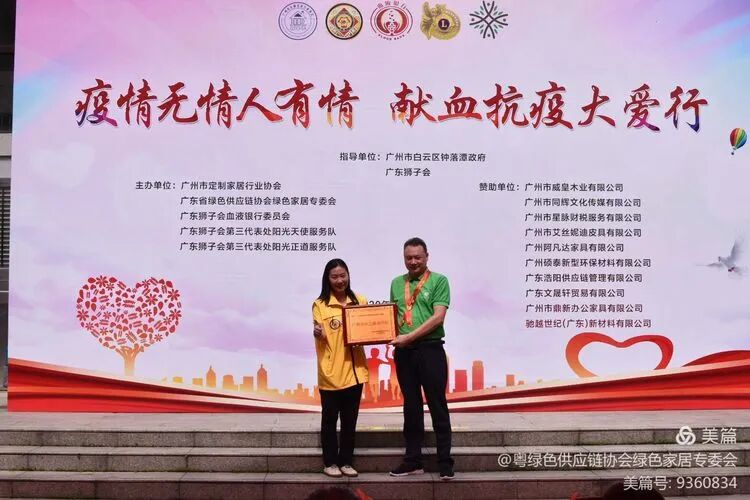 广州市无偿献血工作委员会向广东省绿色供应链协会绿色家居专委会授牌!