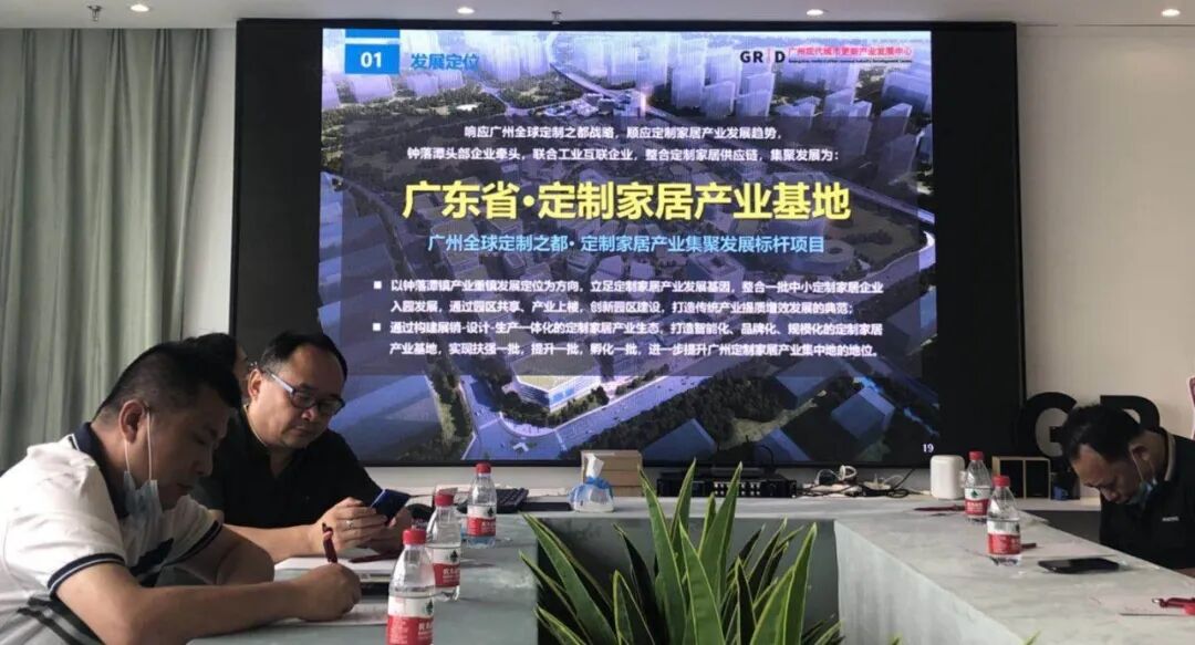 5月25日,广州市定制家居产业园项目落地讨论会,在广州市现代城市更新产业发展中心(安华汇)举行,广州市现代城市更新产业发展中心江浩院长主持了会议,广州市白云区钟落潭镇经济办戴勇主任、广州市白云区钟落潭镇工商业联合会张锦辉会长、广州市定制家居行业协会王天兵会长、参加会议的还有协会常委/秘书长谭增茂、协会顾问/合生雅居龙红董事长、协会常委朱坤海执行会长、刘承恒执行会长、芯恒安智能科技王中信总经理、广东丽的通讯设备有限公司的董事长冯国贤、广东科霖环保曾广文董事长、广州鼎好家具曹健康董事长、合茂塑胶冯海源总经理等。