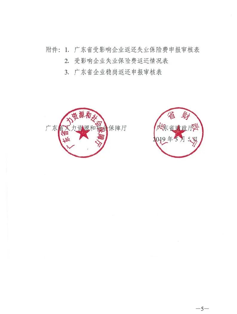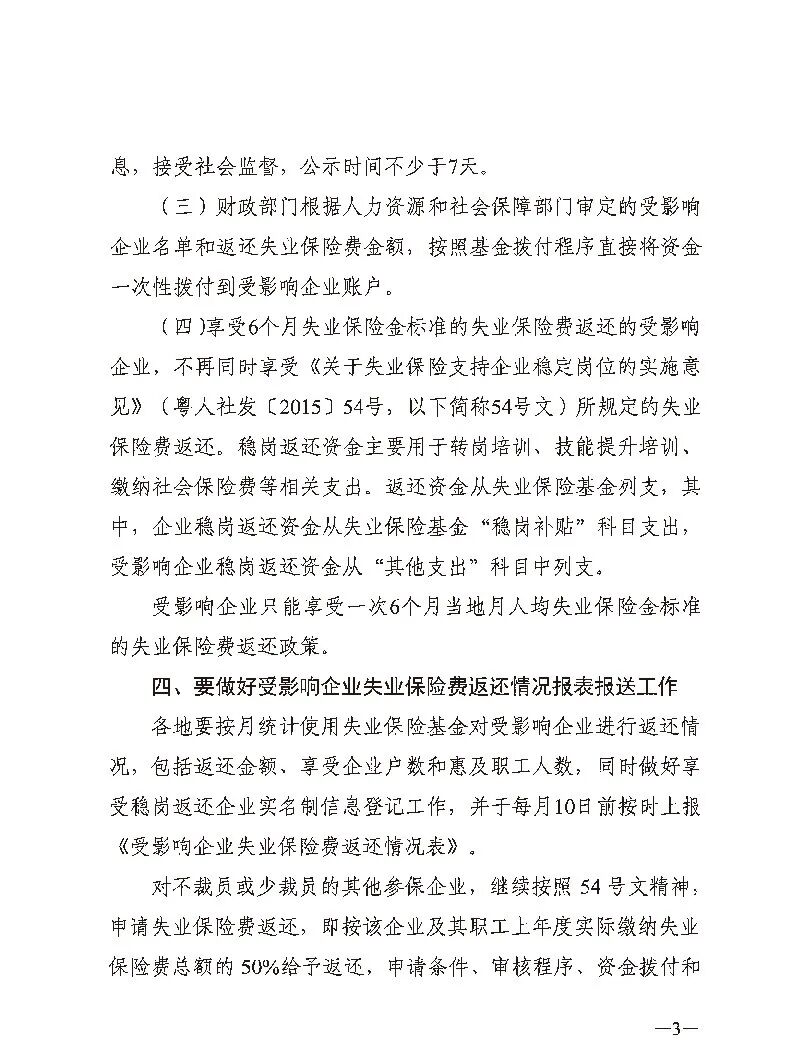 广东省人力资源和社会保障厅 广东省财政厅关于做好2019年受影响企业失业保险费返还工作有关问题的通知