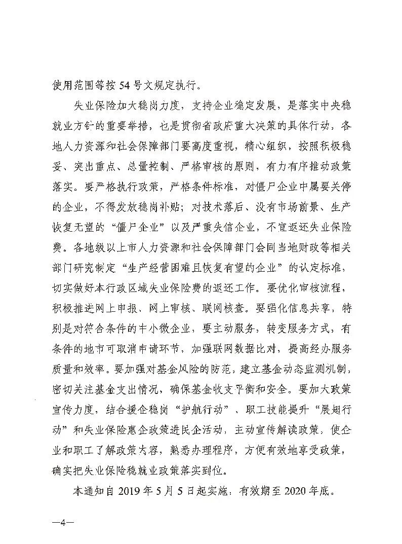 本通知自2019年5月5日起实施,有效期至2020年底。