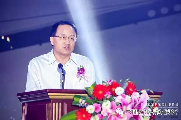 随后,广州定制家居行业协会会长王天兵进行了发言。他表示,定制产业已经是国家认可的高端制造业,是大湾区战略的重要布局,这是行业一次重大的战略机会。协会也会响应政府号召,全力推动定制家居行业的发展。