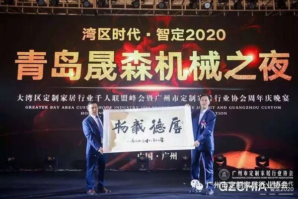 本次盛会由广州市定制家居行业协会为主办单位,青岛晟森机械有限公司为冠名单位,着眼未来,探讨如何整合资源为企业赋能,论道产业转型升级,于湾区时代,共同智造未来。