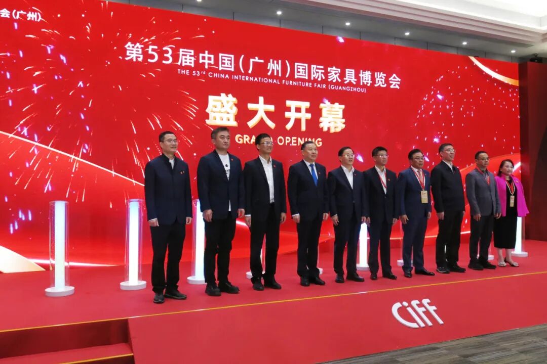 中国对外贸易中心副主任周善青,商务部驻广州特派员办事处特派员王东,中国家具协会理事长徐祥楠,广东省商务厅副厅长孙斌,广州市商务局副局长罗政,广东省家具协会会长王克,红星美凯龙家居集团执行总裁兼大营运中心总经理朱家桂,香港家私装饰厂商总会主席梁励等共同启动第53届中国家博会(广州)开幕式,见证这一家居盛事。