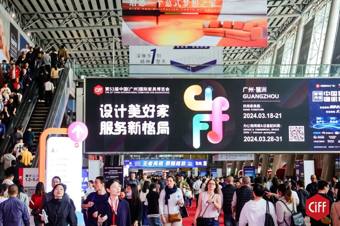 3月18日,由中国家具协会、中国对外贸易中心集团有限公司、广东省家具协会、红星美凯龙家居集团股份有限公司、香港家私装饰厂商总会有限公司共同主办的第53届中国家博会(广州)在广州琶洲盛大开幕。本届广州家博会以“设计美好家、服务新格局”为主题,规模空前,参展品牌超4700家,两期全馆布局,使用91个展馆,展览面积扩大至85万平方米,同比疫情前2019年的最高峰76万平方米增加11.8%,创下新高。
