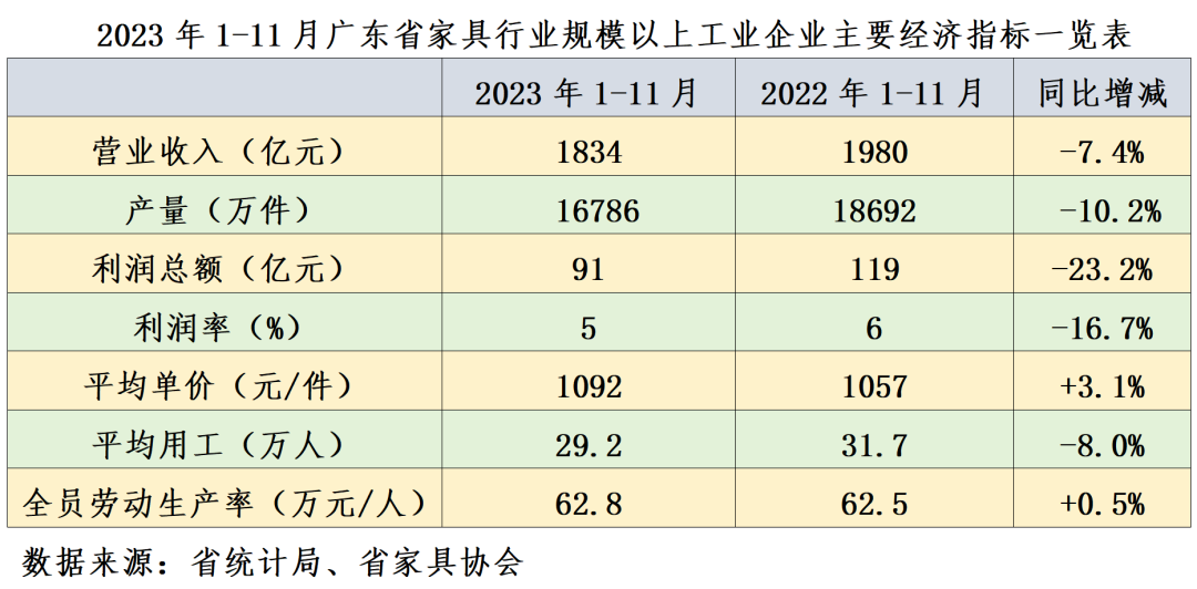 2023年广东省家具行业运行情况