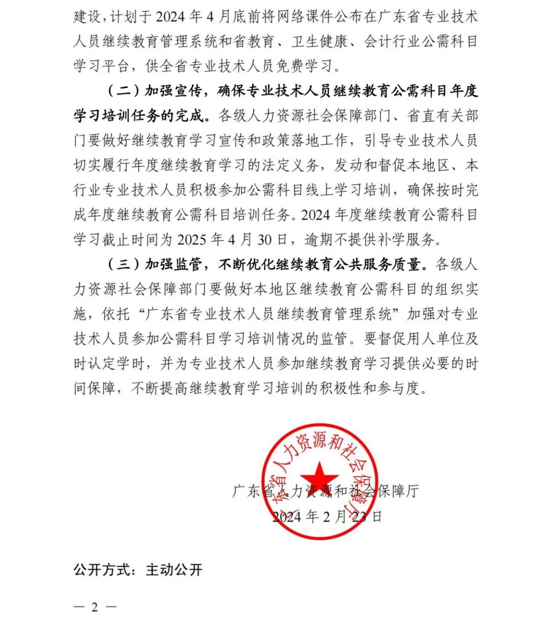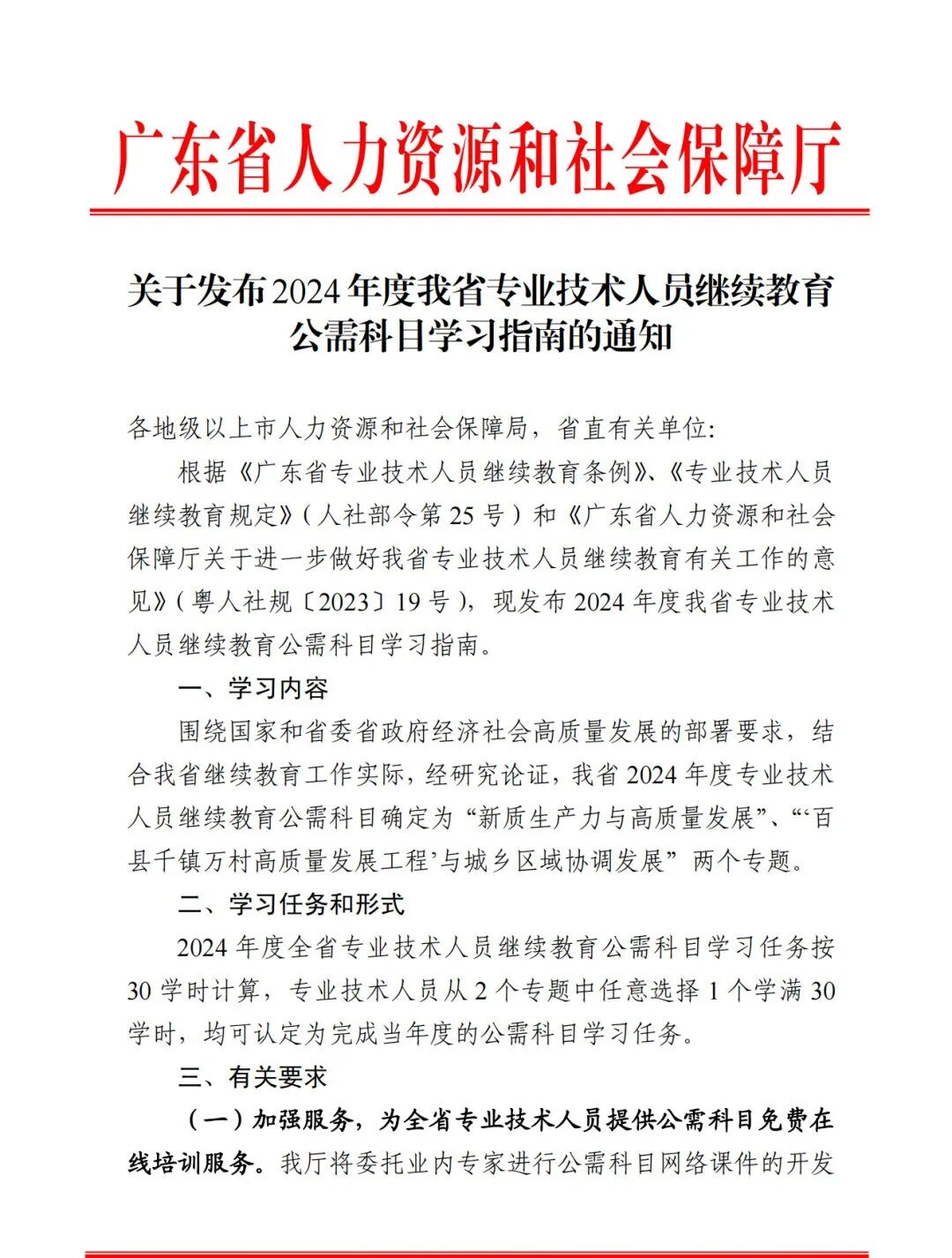 【职称评审】转发:关于发布2024年度广东省专业技术人员继续教育公需科目学习指南的通知