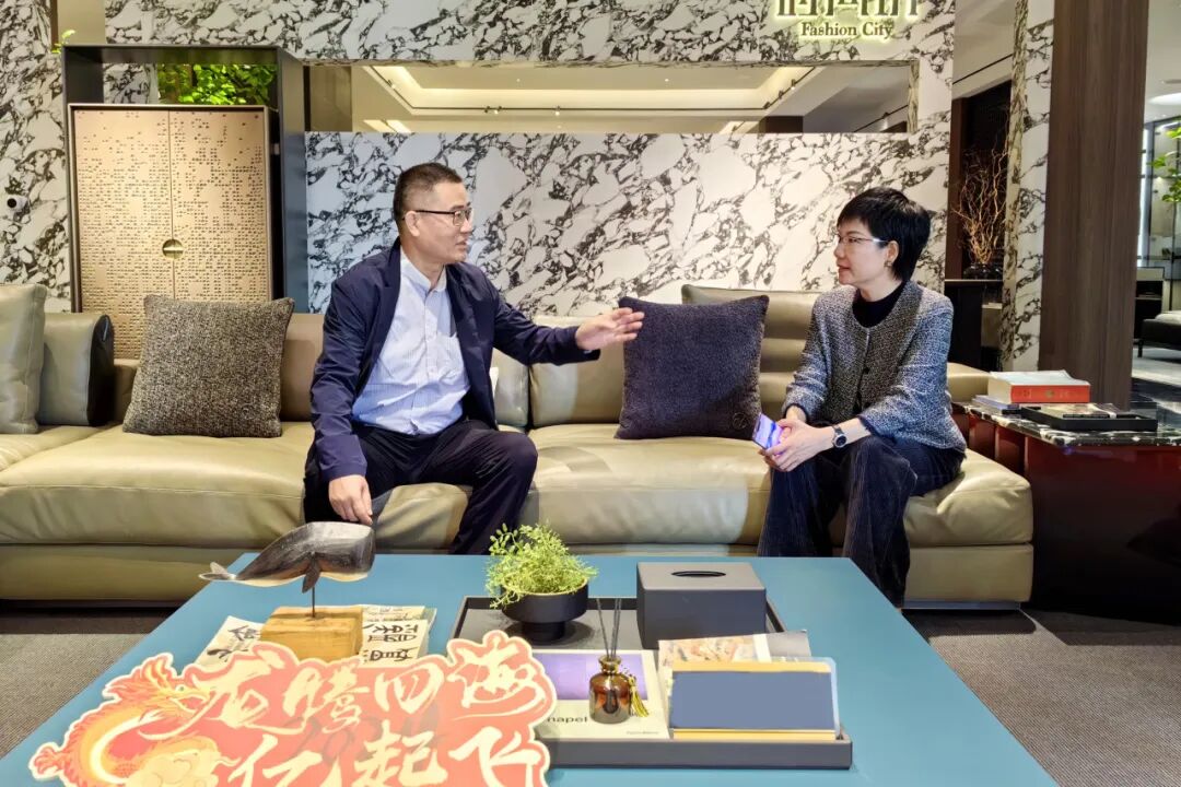 陈总裁对王会长一行的来访表示欢迎,她就罗浮宫的服务宗旨、运营近况、客户结构和流量、商户及社会评价等进行介绍。她提到20多年来罗浮宫坚持以“品牌力、产品力、服务力”为核心开展各项工作,成为内地首家也是唯一一家通过香港Q唛绿色环保认证的家居商业平台,为客户选购放心产品提供了品质保障。接下来罗浮宫将充分利用地缘优势,持续提高平台竞争力,扩宽海外渠道,更好的服务商户和行业。