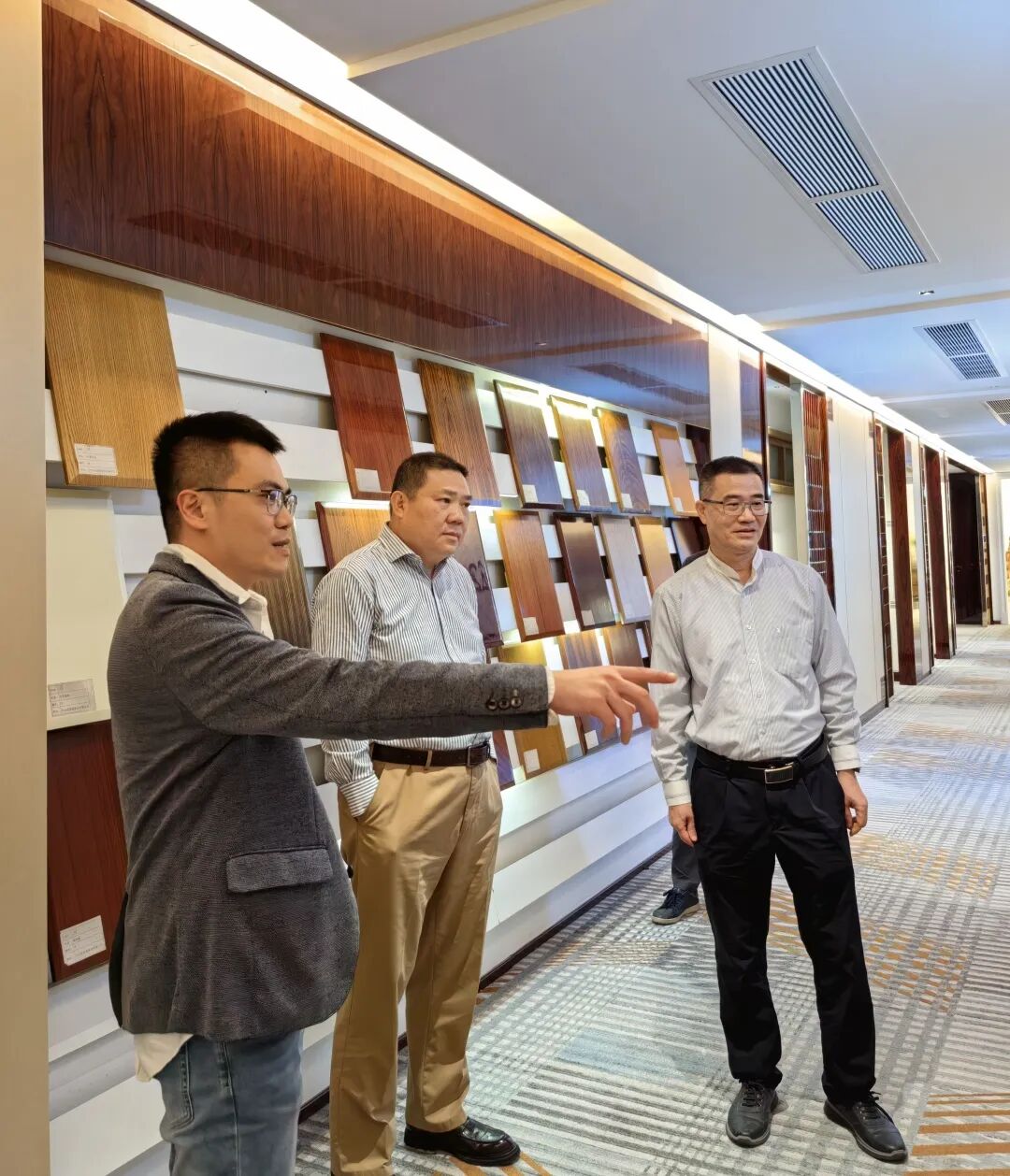 黎总对王克会长一行表示欢迎,并介绍了美盈家具集团2023年市场情况、产品研发、市场布局及市场应对策略等内容。随后双方共同探讨了未来家具产业智能制造的发展趋势,并就如何引领、助推产业技术变革和优化升级等进行了深入的交流探讨。
