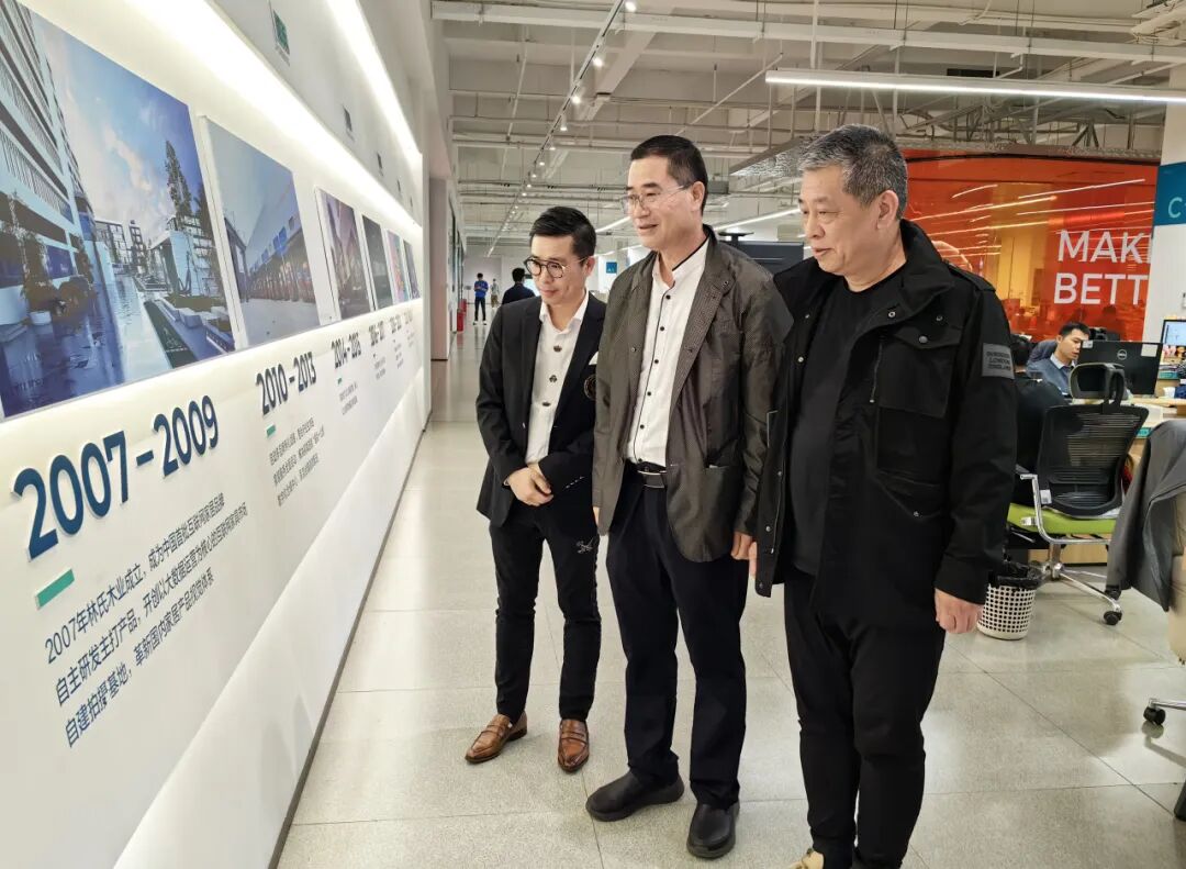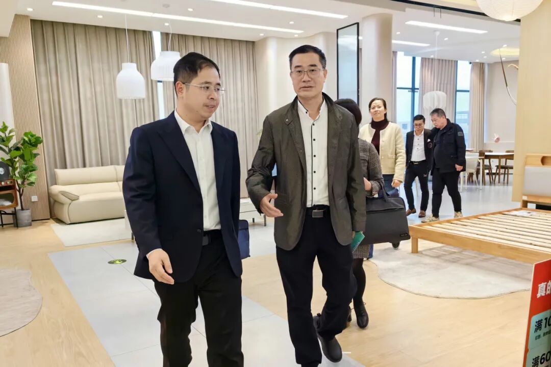 1月8日,南海区家具产业链系列赛启动仪式结束后,广东省家具协会会长王克与九江镇镇长罗淮东、广东省工业设计协会常务副会长周红石、南海区家具行业协会会长(广东家协执行会长)廖顺南到林氏家居股份有限公司参观调研。