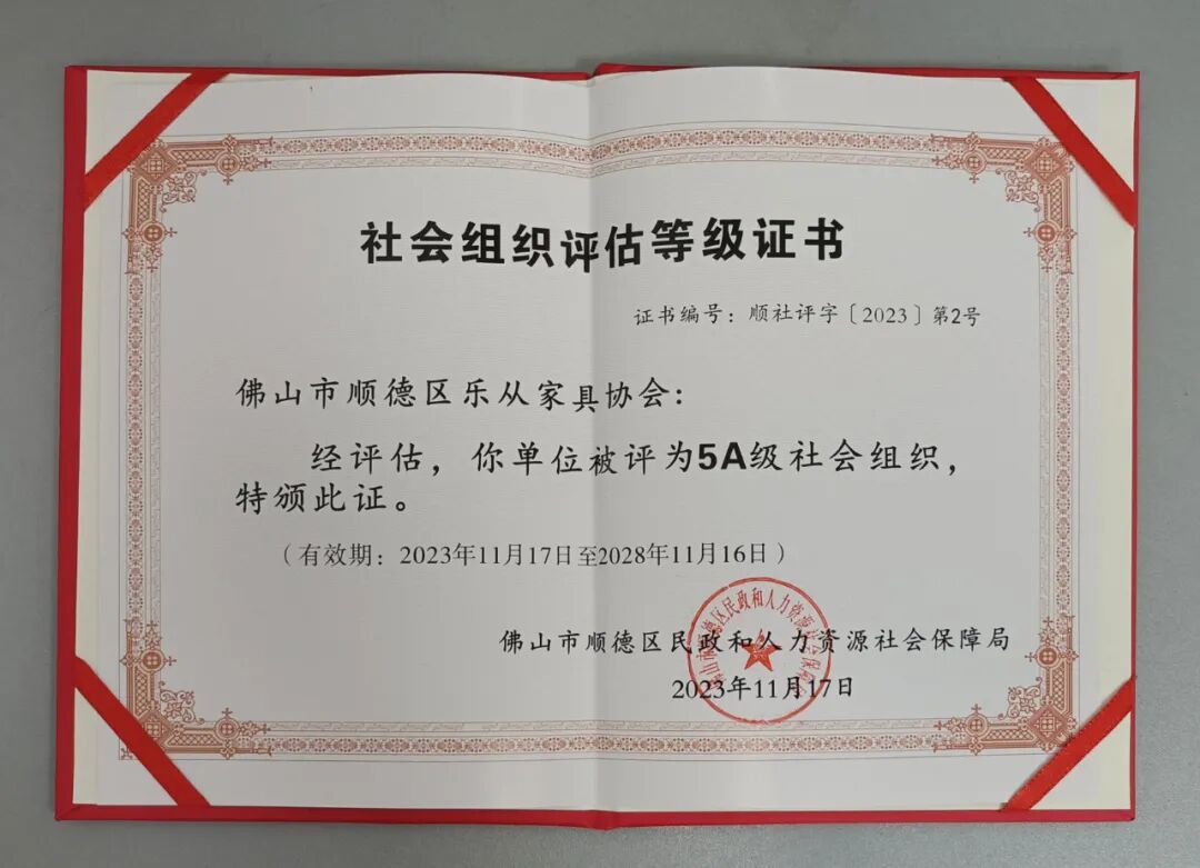 乐从家具协会再次获评区5A级社会组织,