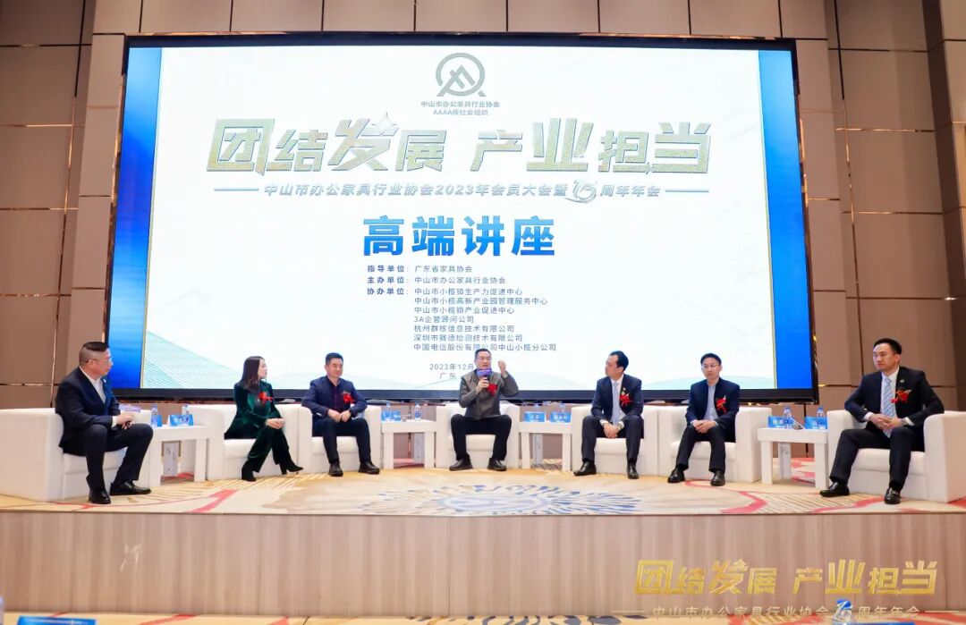 12月26日下午,由中山市办公家具行业协会主办的“团结发展 产业担当”高端讲座在中山小榄举办。作为中山市办公家具行业协会十五周年年会的系列活动之一,本次高端讲座由广东省家具协会指导,中山市小榄镇生产力促进中心、小榄高新产业园管理服务中心、小榄镇产业促进中心等协办。与会领导嘉宾探讨分享了办公家具产业发展的最新动态、降本增效、标准创新、前沿技术以及成功案例。
