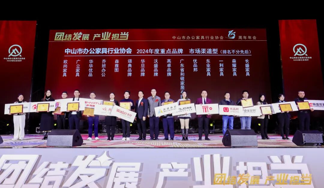 省家具协会王克会长为“中山市办公家具行业协会2024年度重点品牌”颁发牌匾