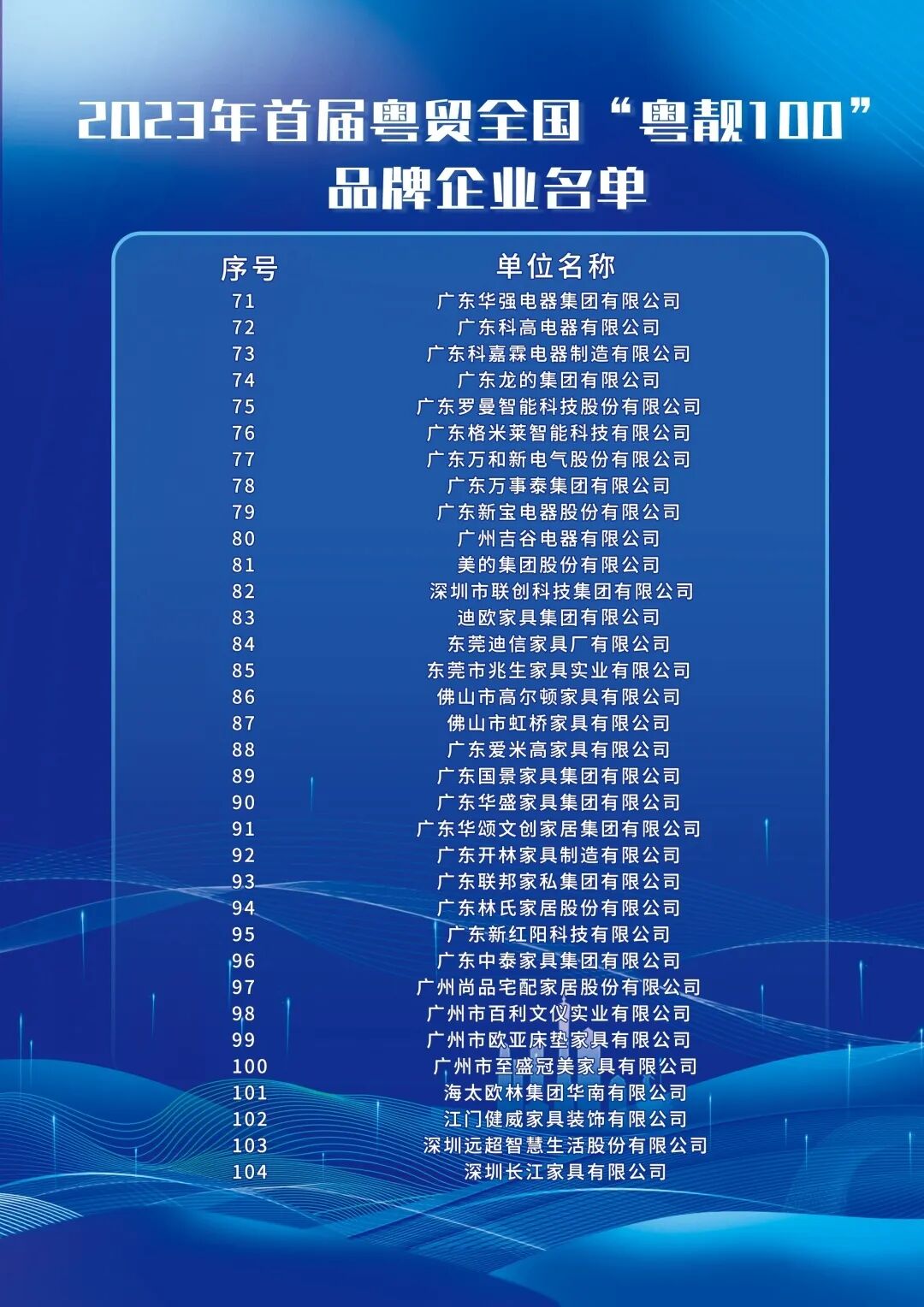 附:2023首届粤贸全国“粤靓100”品牌企业名单