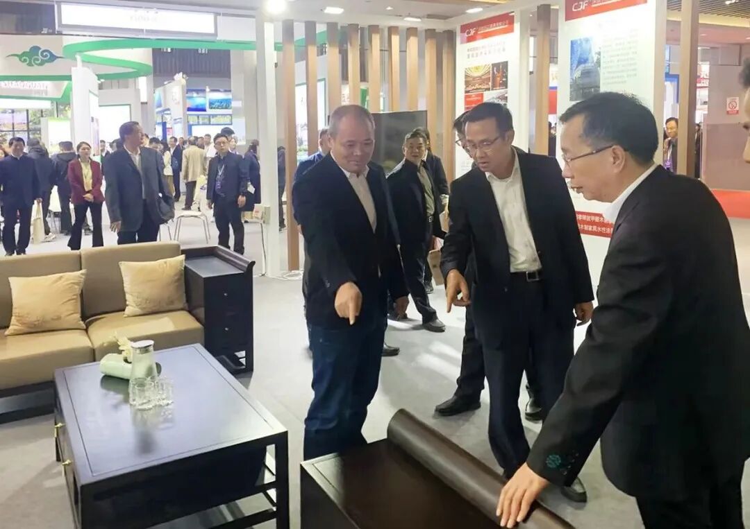广东省政府副秘书长厉海帆(右一)、广东省林业局局长陈俊光(左二)莅临长江家具展区