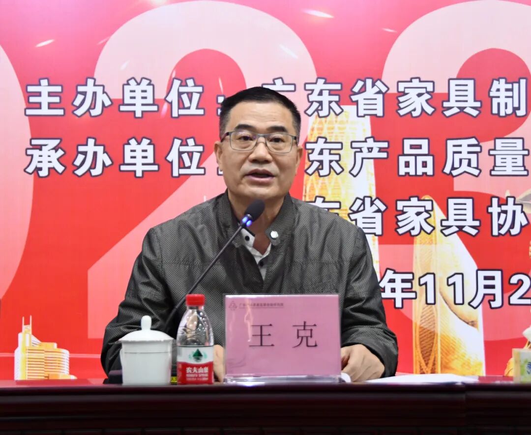 广东省家具协会会长王克作题为《团结一心,开创我省家具行业标准化工作新局面》的就职讲话。他深感荣幸连任主任委员一职,衷心感谢上级领导部门、标委会所有委员单位以及秘书处对其工作的信任和支持。
