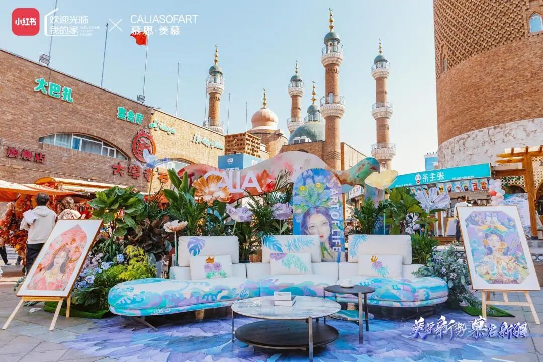 CALIASOFART&慕思·羡慕两大力作优雅亮相,在大巴扎上限时展出有青年人气艺术家赵小黎的联名沙发,优美浪漫的造型碰撞大胆明艳的色彩,视觉冲击力拉满,氛围感十足,吸引大量慕粉前来打卡。