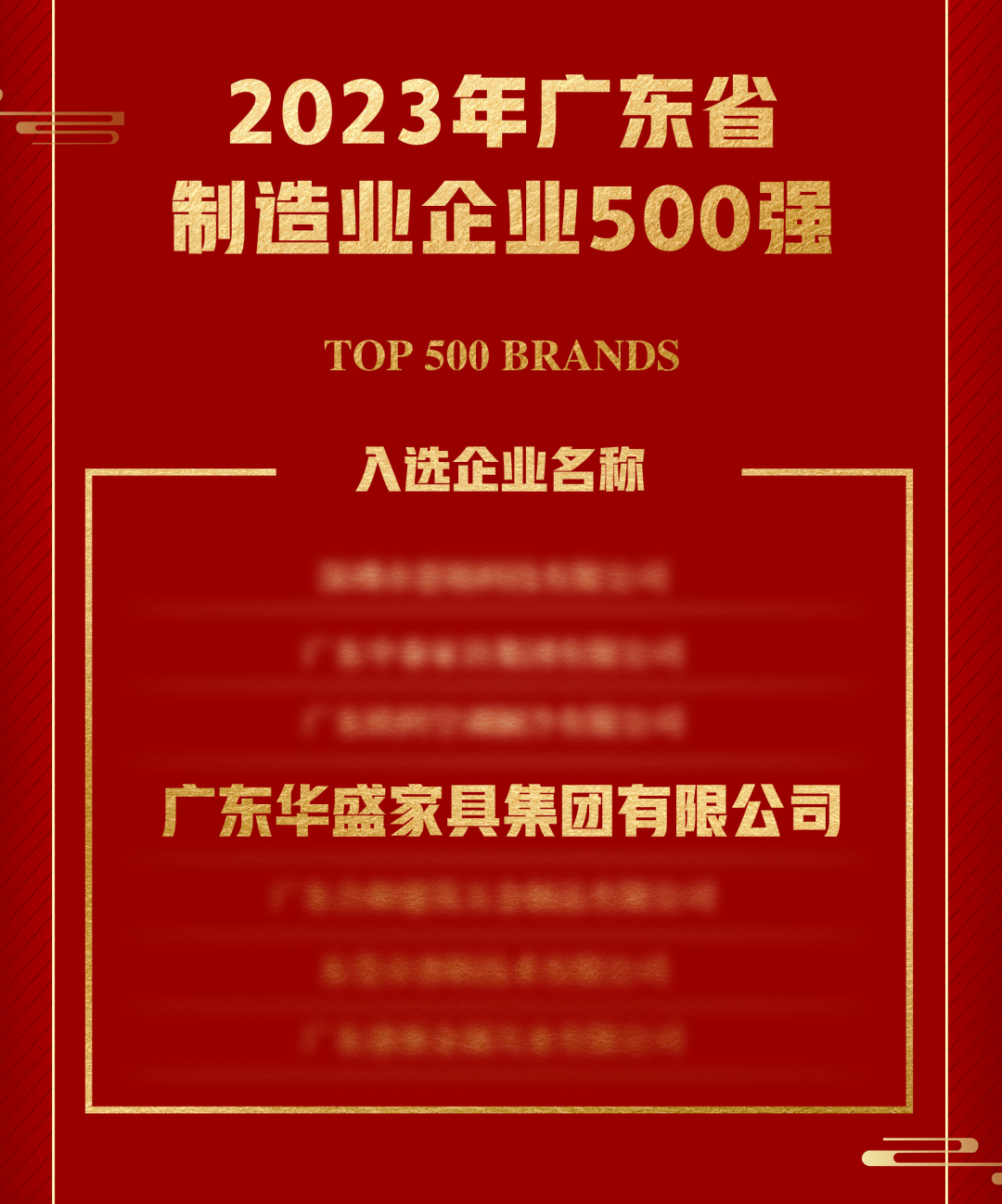 【会长风采】华盛家具集团再次荣登广东省制造业企业500强荣誉榜