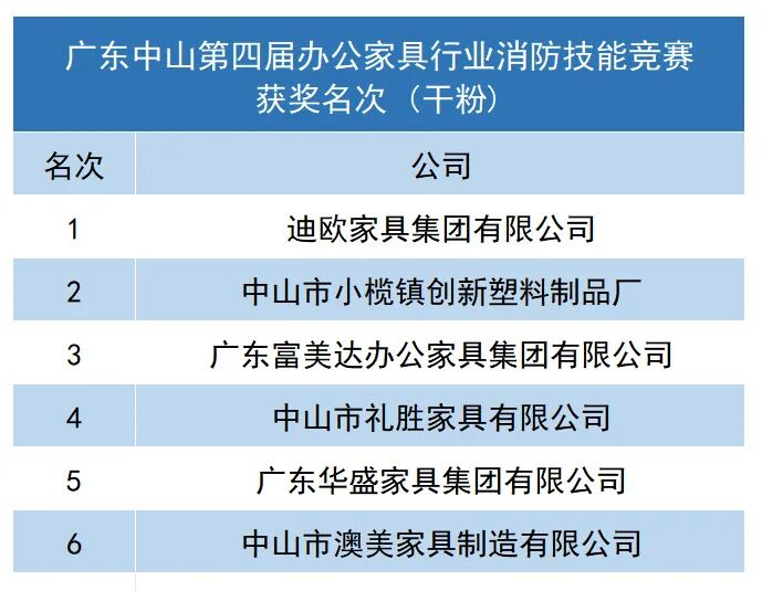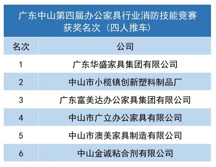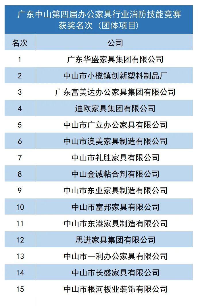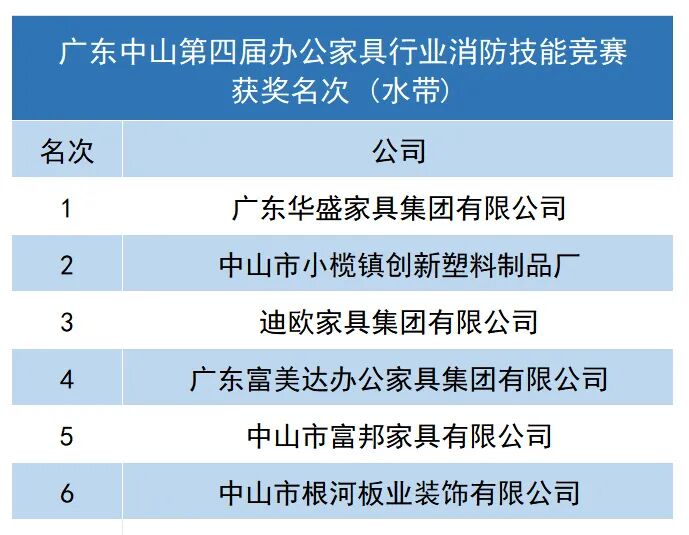 再次祝贺在广东中山第四届办公家具行业消防技能竞赛中获得荣誉的个人和单位!